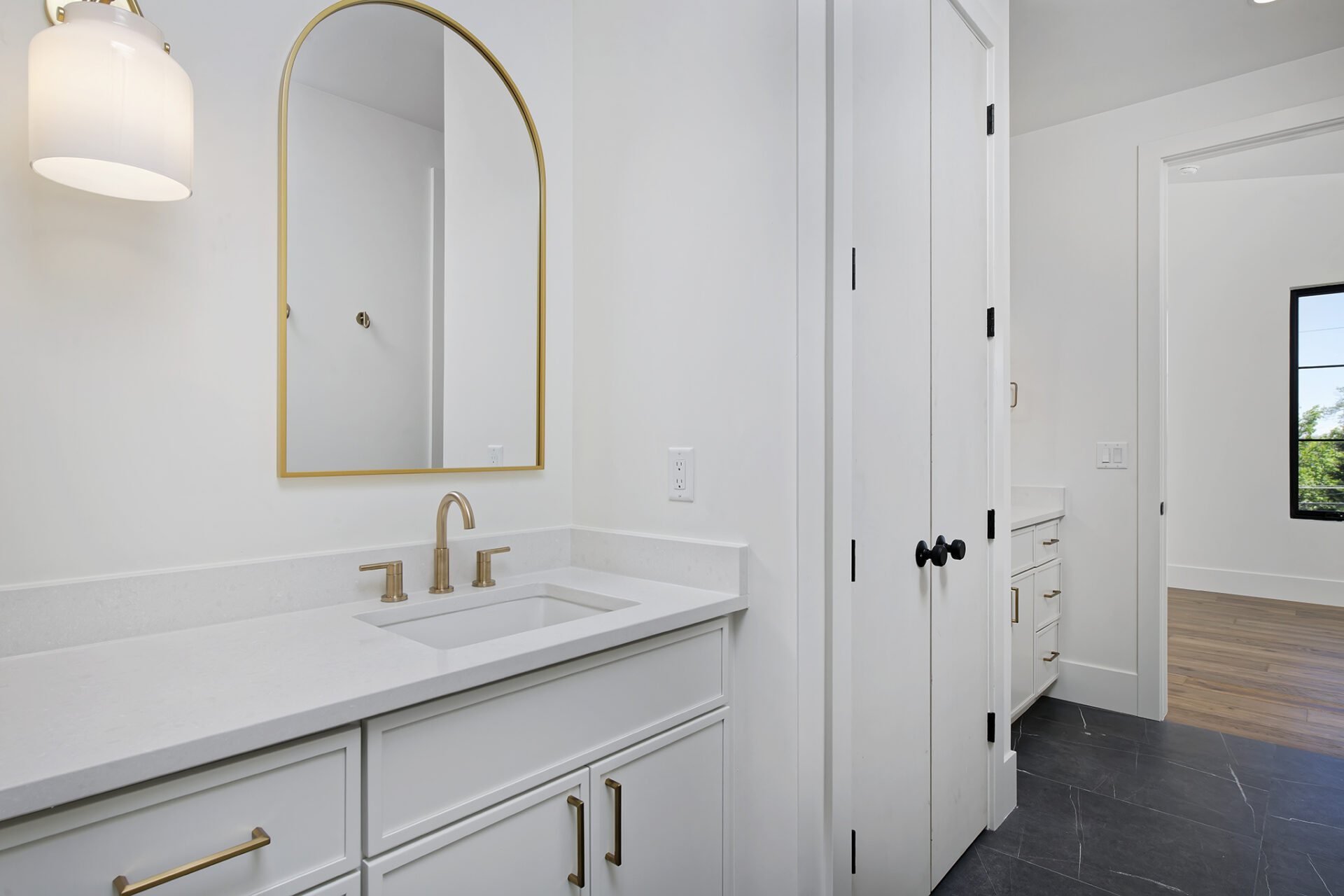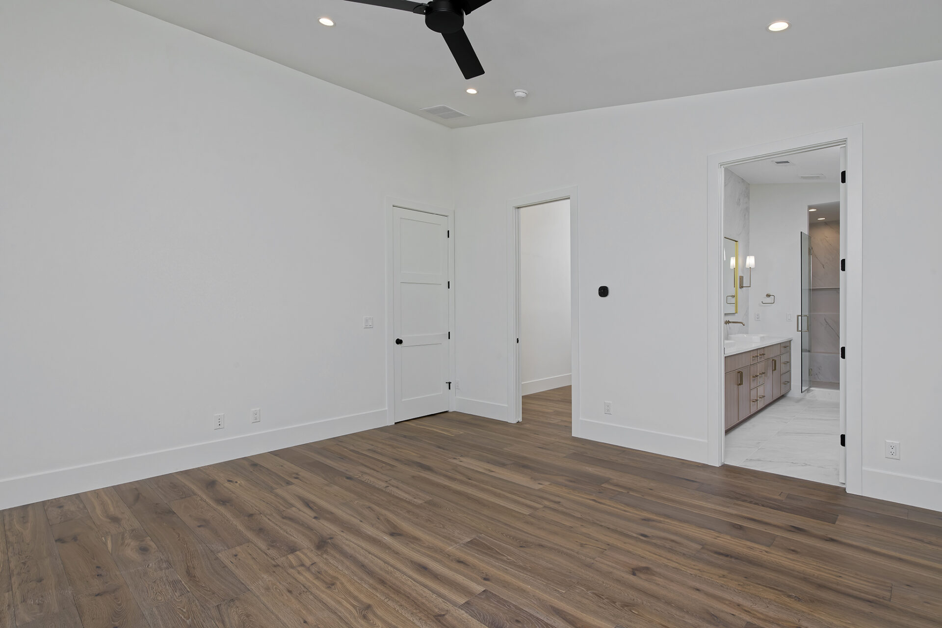 Retreat to the luxurious primary suite, showcasing a bathroom that rivals premier spas. Indulge in the serene atmosphere with high-end fixtures, a soaking tub, and elegant finishes, designed for ultimate relaxation.